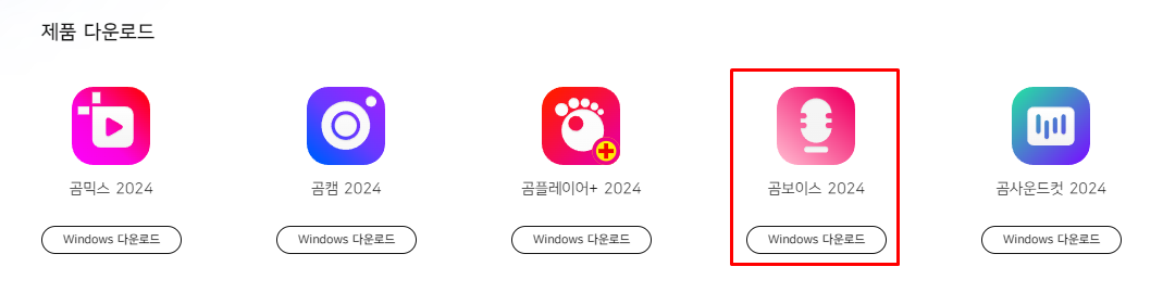 곰랩 공식홈페이지에 접속하면 하단에 내려 보면 아래와 같이 곰보이스 2024 다운로드 버튼이 있습니다.