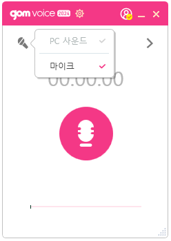 ✔ 녹음 대상 지정 : PC 사운드와 마이크 중 녹음할 대상을 선택할 수 있습니다.