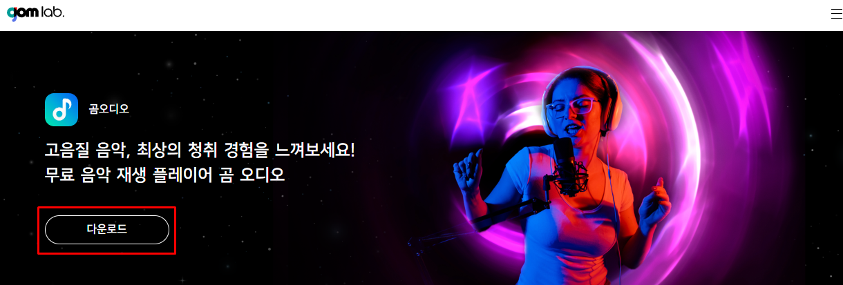 곰오디오를 다운받으려면 GomLab 공식홈페이지에서 가능합니다. 곰오디오는 PC버전과 모바일(Android)버전으로 다운 받을 수 있습니다. 아래 링크를 통해서 PC/모바일 버전을 선택해서 다운받으시기 바랍니다.