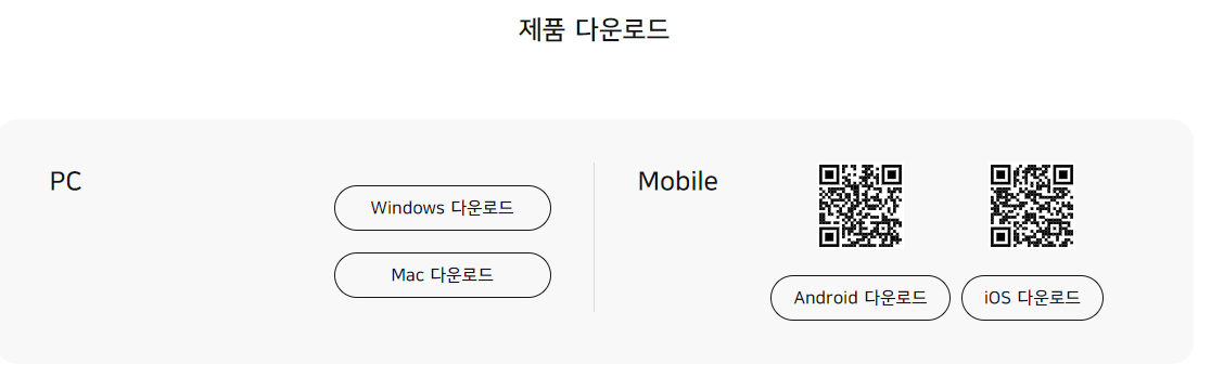 2. [다운로드] 버튼을 클릭하면 곰플레이어 제품 다운로드로 이동하는데요. PC버전인 Windows / Mac 다운로드가 있으며, 모바일버전인 Android / iOS 다운로드가 있으니 취향에 맞게 다운로드 받으시면 됩니다.
