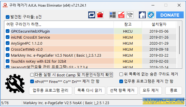 • 자동적으로 내 PC에 설치된 잡다한 보안 프로그램 자동 삭제