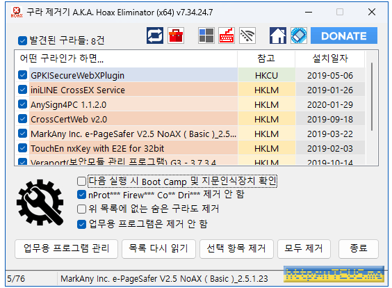 불필요한 보안 프로그램 삭제 | 금융 보안 프로그램 자동 탐색 및 제거 |