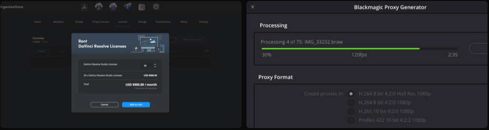 클라우드에서 프로젝트 라이브러리를 다빈치 리졸브 프로젝트 서버로 호스팅이 가능합니다. 프로젝트를 공유하며, 전 세계 모든 편집자, 컬러리스트, VFX 아티스트, 음향 엔지니어와 동시에 동일한 프로젝트에 접혹해 협업할 수 있습니다.