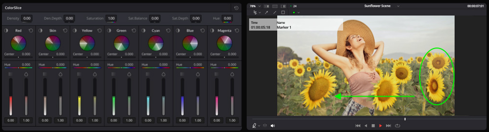 ColorSlice 팔레트는 감산 방식의 컬러 효과를 사용하여 이미지 컬러 밀도 및 채도, 색상을 조절하고 필름 같은 풍부한 컬러와 룩을 표현할 수 있습니다. 사용자 정의가 가능한 각 벡터 슬라이스의 파라미터를 사용해 스필 없이 색상을 향상시키거나 깊이감을 더하되, 자연스럽게 연출할 수 있습니다.