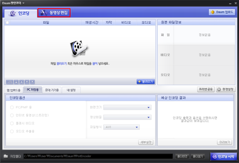 다음팟인코더에서는 영상 자르기 및 합치기 등과 같은 동영상 편집을 할 수 있습니다. 동영상 편집은 그렇게 어려운 부분이 아니라서 아래 링크를 통해서 동영상 편집 설명을 보시기 바랍니다.