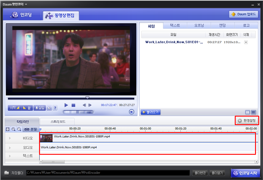 10. 모든 설정이 완료되었고, [인코딩시작] 버튼을 클릭합니다.
