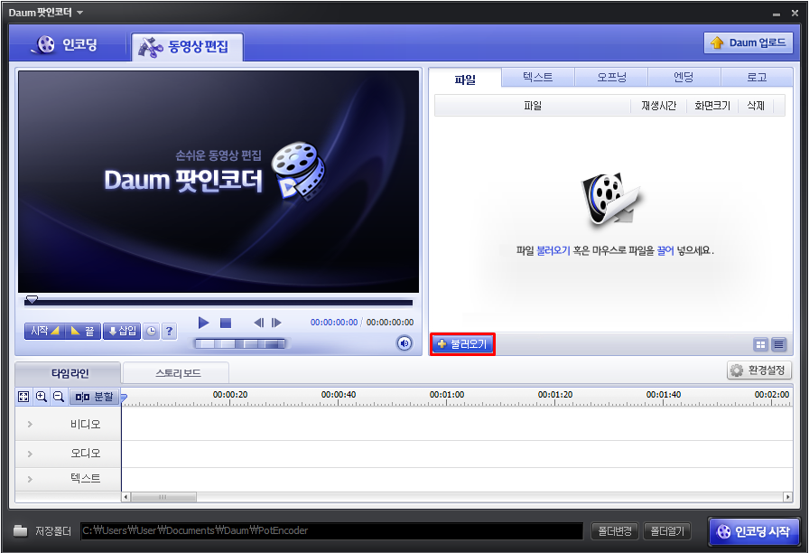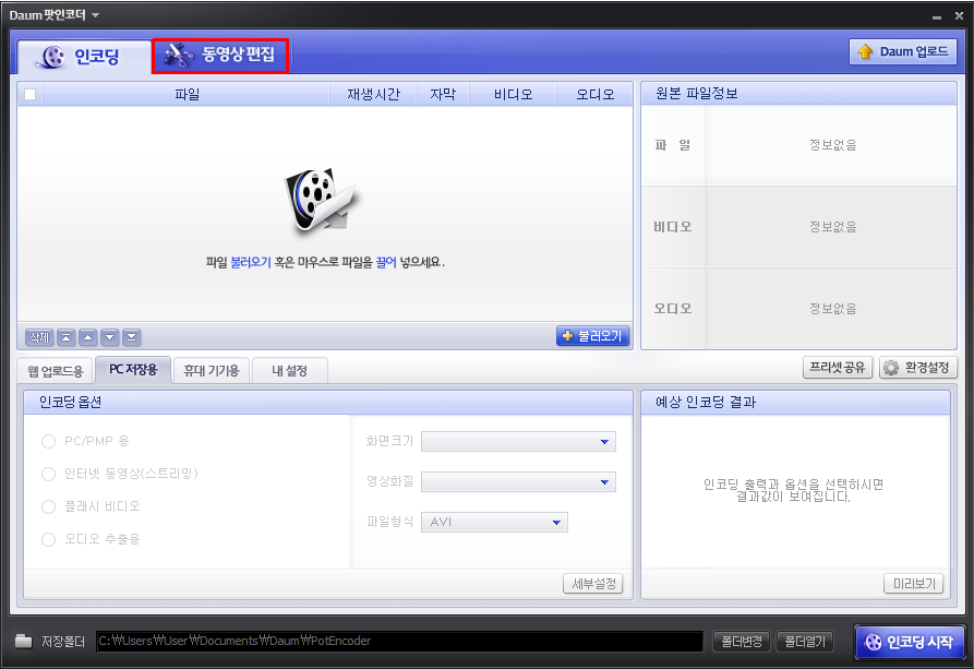 1. 다음팟인코더에서 [동영상편집] 탭을 선택합니다.