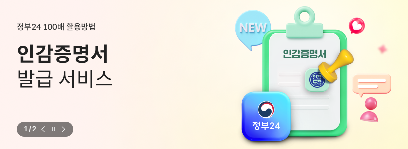 ① 정부24에서 발급하는 인감증명서의 서비스 대상 등 유의사항을 꼼꼼히 확인하여 이용하고자 하는 발급 목적에 부합하는지 확인합니다.