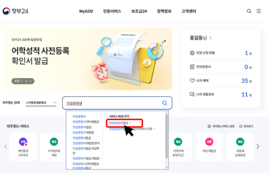 ① 검색어로 ‘인감증명서’를 입력합니다.