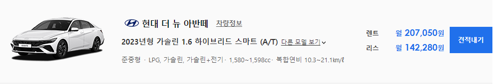 장기 렌트카 추천 차량