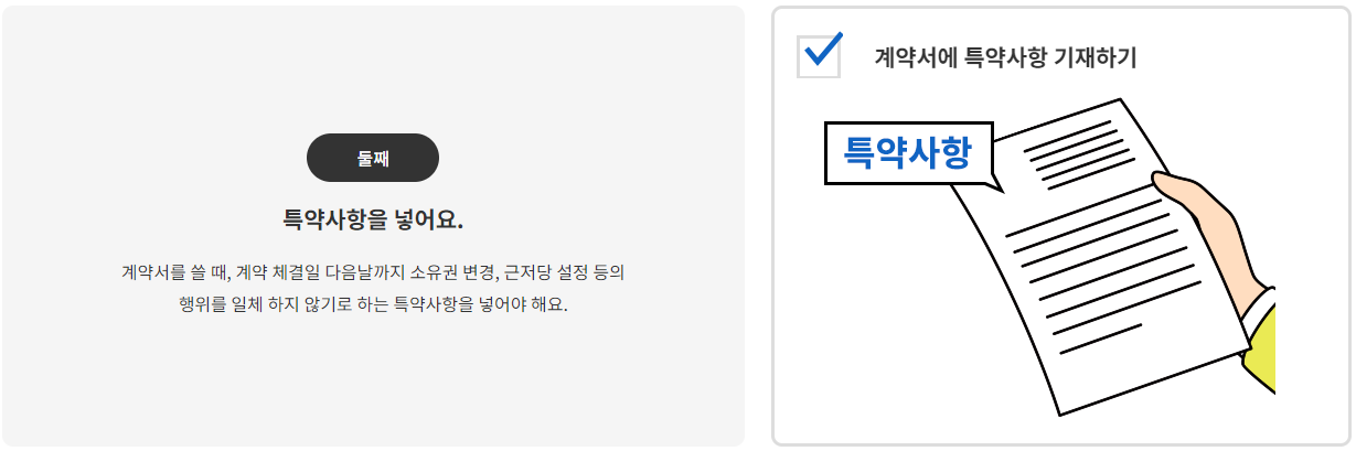 특약사항에 임대인의 의무를 명확하게 기재하도록 해야 해요. 그러면 근저당권을 말소하지 않을 시, 전세 계약을 취소할 수 있어요. 필요하다면 임대인이 계약서 특약을 지키지 않아서 세입자에 생긴 손해에 대한 배상도 요구해볼 수 있겠죠. 특약을 쓴 뒤, 무엇보다 중요한 것은 임대인이 근저당권 또는 신탁등기를 말소하는지 두 눈으로 직접 확인하는 일이에요. 예를 들어 임대인이 신탁등기를 말소하겠다는 특약을 썼다고 해도, 어차피 신탁등기에서 임대 권한을 가진 것은 신탁회사이기 때문에 유의해야 해요. 아예 계약서에 보증금을 입금할 신탁회사를 정확히 적어두고, 보증금을 신탁회사로 입금하는 게 더 나을 수 있어요.