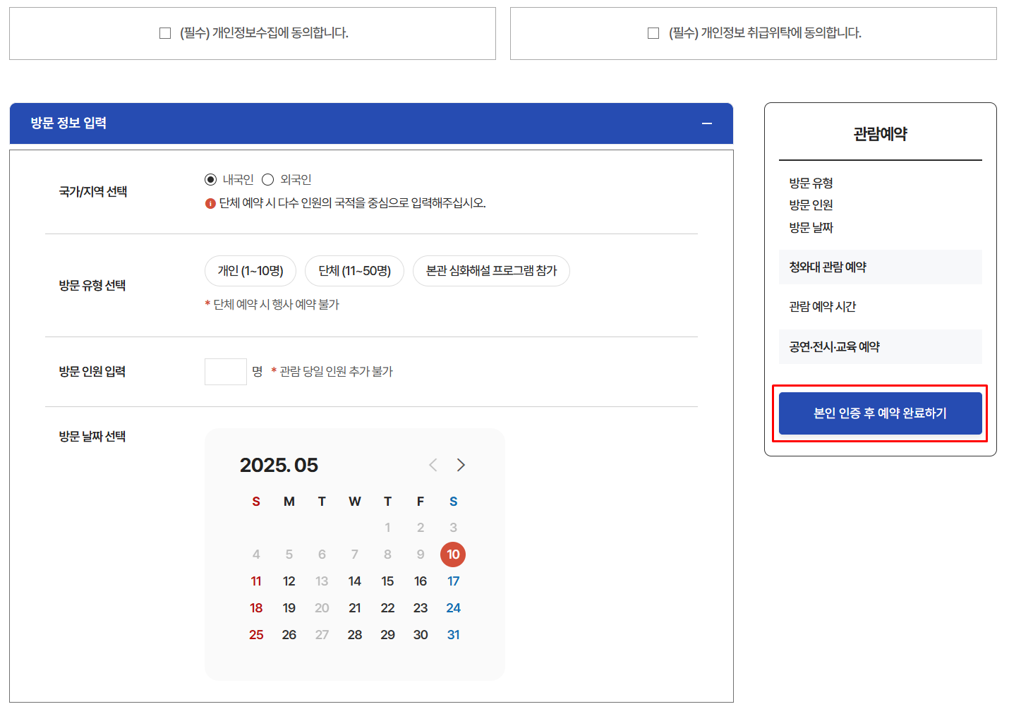 🔗 사이트 | 청와대 국민개방 통합 예약 |