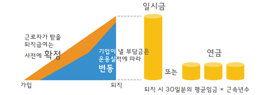 근로자가 퇴직할 때 받을 퇴직급여가 사전에 확정된 퇴직연금 제도 입니다.