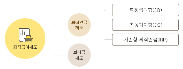 퇴직연금제도는 근로자들의 노후소득 보장을 위해 근로자 재직 기간 중 사용자가 근로자의 퇴직급여를 금융기관에 적립하고, 이 적립금을 사용자(DB) 또는 근로자(DC)가 운용하다가 55세 이후에 연금 또는 일시금으로 수령할 수 있도록 하는 제도 입니다.