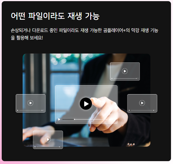 - AVI, MP4, MKV 등 100여개이상 포맷지원