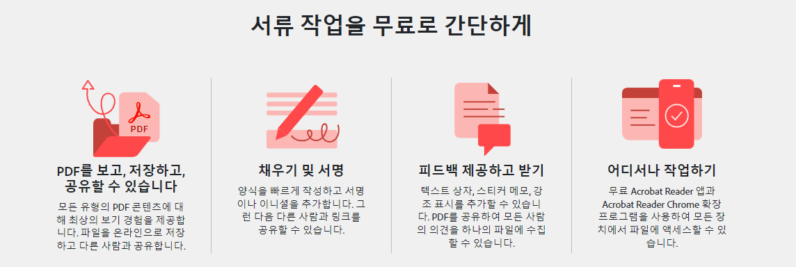 - Acrobat Reader를 다운로드하여 데스크탑과 Google Chrome 브라우저에서 Acrobat으로 PDF작업을 수행해 보시기 바랍니다.