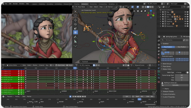 Blender는 3D 모델링, 애니메이션, VFX, 렌더링 등 다양한 기능을 제공하는 프로그램으로, 무료로 사용 가능하며 강력한 성능 덕분에 많은 디자이너와 애니메이터들이 애용하고 있습니다.