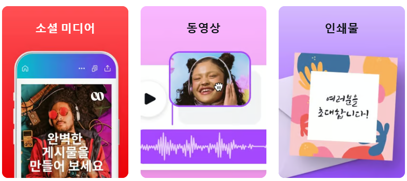 ✔️ 간편한 드래그 앤 드롭 방식의 편집 ✂️ ✔️ 수많은 무료 이미지, 아이콘, 폰트 제공 🖌️